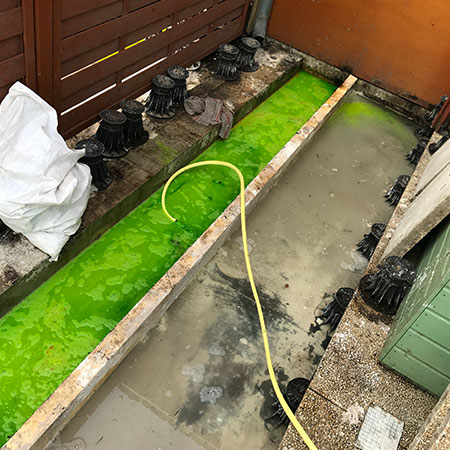 Une méthode efficace et sans casse pour localiser les fuites sur tous types de terrasses lestées. Ce procédé consiste à insuffler sous l’étanchéité de la fumée via un générateur. Les défauts d’étanchéités seront ainsi repérés par la fumée s’échappant des points d’infiltrations.